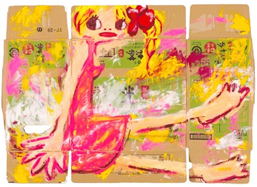 八月底時,去看了「台北國際藝術博覽會」,看到現場創作的女藝術家,個頭不高,像一般日本小女生一樣,當下只是覺畫風好像有看過,但記不起來是誰,查了一下,發現她是村上隆「Kaikai Kiki」所推薦的藝術家叫六角彩子(Ayako Rokkaku)。